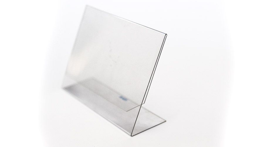 - Indicado para balcões, caixas, mesas de atendimento. O modelo 'L' possibilita a visão do cartaz/informativo em 1 frente.
